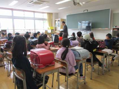 ポツリポツリと雨が降っていたので、急遽新学年の教室に入り、テレビ放送での始業式になりました。6年生の代表児童のことばもとても立派でした。