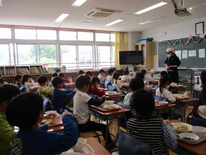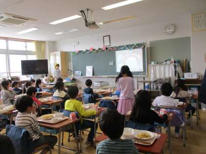 1年生は、今日から給食が始まりました。小学校生活で最初の給食です。
