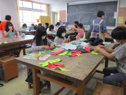 画用紙をよくもんで柔らかくして、すてきな葉っぱづくりをしていました。図工室に入ると「触ってみて!」と寄ってきて、紙を渡してくれました。柔らかくて気持ちいいねぇ。子どもたちはその感触を楽しみながら、作品作りをしていました。