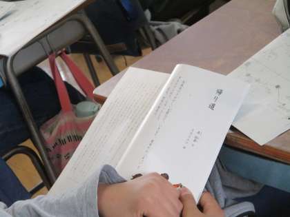 「帰り道」という国語の教科書に載っている物語から、登場人物の気持ちを考え、物語を深く読み取る授業が展開されていました。