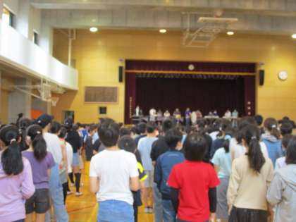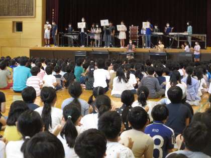 そのあとには、器楽委員の演奏で校歌を歌い、体育館に歌声が響きました。