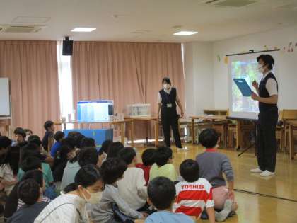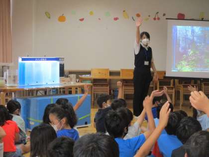 水道キャラバンの方々が、子どもたちの興味を引く教材を用意し、水が水道の蛇口から出てくるまでをしっかり学ぶことができたようでした。