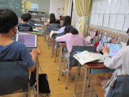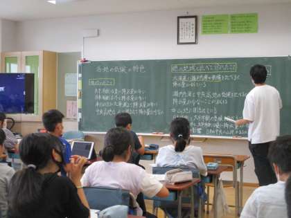 日本各地の気候の特色を学びました。授業の終わりには、学んでいる中で出てきたキーワードをいくつか挙げて、そのワードを使って、日本の気候を文章でまとめました。