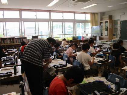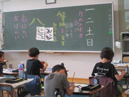 3年生から始まった毛筆の授業。とめ、はらいなど、習字ならではの学習に興味をもって熱心に取り組んでいました。