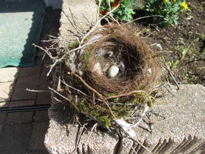 一体、どの鳥の巣なのでしょう?オナガの巣の画像をネットで調べたら、そっくりな写真がありました。ちなみに、このたまごはもう雛にかえらないたまごなのでご心配なく。