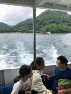 船を待つ間にポツポツ雨が降ってきましたが、乗船すると雨も止み、デッキから景色を楽しむことができました。
