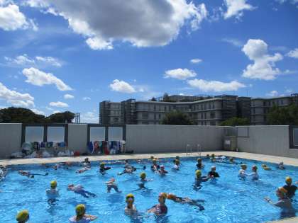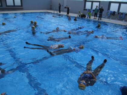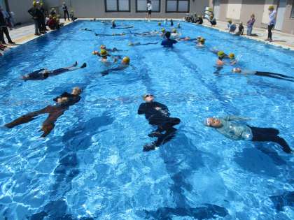 服を着てプールに入ると、思っていたよりずっと重たくなり、びっくりしていたようでした。