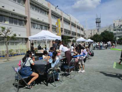 秋晴れの下、校庭と体育館で、PTA主催のイベント「手作り広場」が行われました。