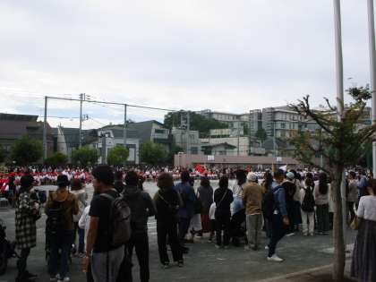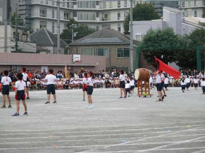初めの応援合戦では、赤組、白組とも、大きな声で力強く応援していました。
