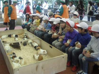 2年生は、井の頭公園へ遠足に行きました。モルモットをだっこする体験は、ふわふわで温かいモルモットを触りました。そして、班ごとに園内の動物たちを見て回りました。4人でいっしょになかよく見る勉強をしました。帰る前には、児童遊園で様々な遊具で思いっきり遊びました。みんなよく歩いて、電車の乗りかえもがんばりました。少しずつ力がついてきている2年生です。