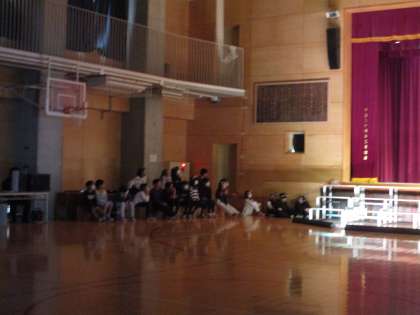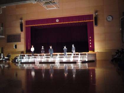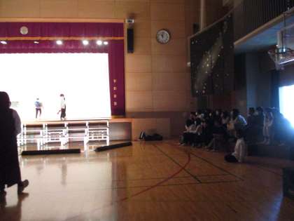 演じている子どもたちだけでなく、舞台下で様子を見ているみんなの顔も真剣です。