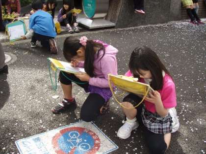 満開の桜の下で、時間をかけてじっくり観察記録を書きました。