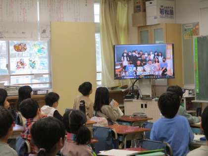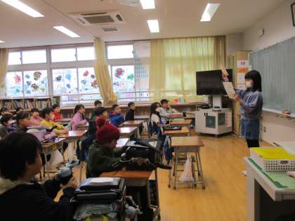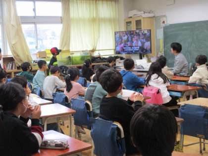 ユニセフ募金について自分たちで作った動画をテレビ放送したあと、国際委員会の子どもが、1クラスずつ、直接教室へ行ってユニセフ募金の呼びかけをしていました。