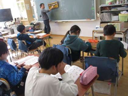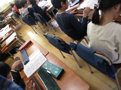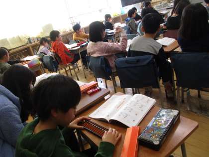 そろばんの位取りの仕方や、足し算や引き算のやり方を、丁寧に学んでいました。