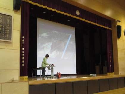 タブレットを使って、わかりやすくまとめてあり、とても立派に発表していました。オーストラリアでの貴重な体験がよく伝わってきました。全校のみんなも聞き入っていました。