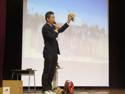 そのあとには、上北沢小学校にも届いた大谷翔平選手からのグローブが、校長先生から紹介されました。