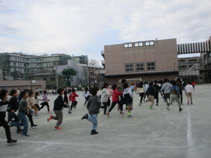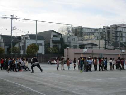 これから、持久走期間が始まるにあたり、1・3・5年生は校庭で体育朝会がありました。クラスごとに集まって体をほぐした後、約5分間走りました。なるべく同じペースで走ることを心掛け、どの子も一生懸命に走っていました。