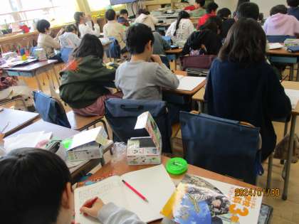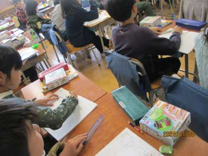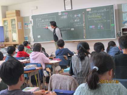 じしゃくの特性について学んでいた3年生。感心したのは、ノートを立派に書いていたこと。教師の問いにも答えながら、しっかりした字で、赤鉛筆と青鉛筆も使い、黒板に書かれた内容を丁寧に書き写すことができていました。