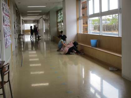 校舎を歩いていると、熱心に掃除をしている5年生に出会いました。