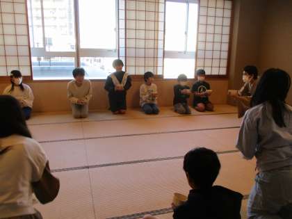 茶道・昔遊びクラブでは、お茶の先生がいらして茶道の作法を教えてくださっていました。