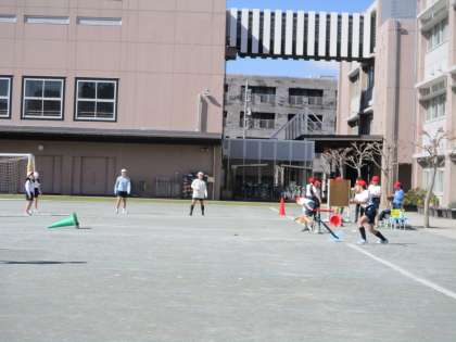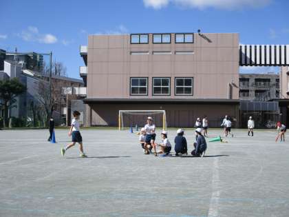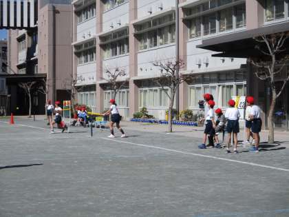 今日は風が強かったのですが、気持ちのよい青空で、5年生が元気に体育でティーボールをしていました。バットがボールに当たると、嬉しそうに走って点を取り、同じチームの子どもたちはもちろん、相手チームの子どもたちも応援している姿があり、仲の良さを感じました。