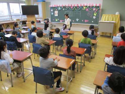 幼稚園や保育園とのつながりを大切にするために、「スタートカリキュラム」という1単位時間(45分)をいくつかの活動に分けてカリキュラムを実施し、子どもたちが活動しやすいように工夫しています。