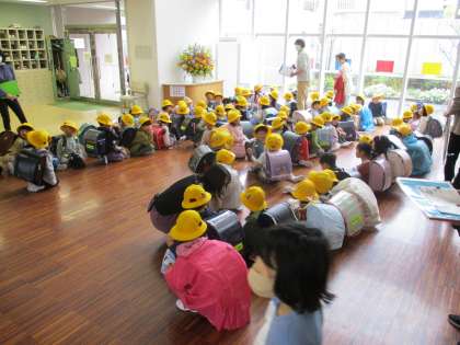 下校時は、学童の児童指導員の方と一緒にコースごとに全員にいるか、一人一人を確認してから集団下校をしました。