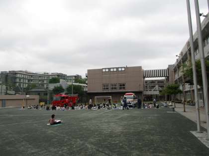 3,4時間目に校庭に消防車と救急車が来てくれました。