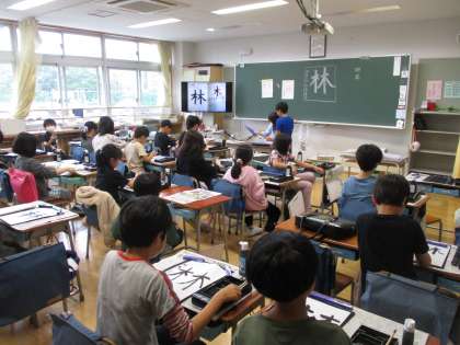 4年生の教室では書写の学習で「林」という字を書いていました。