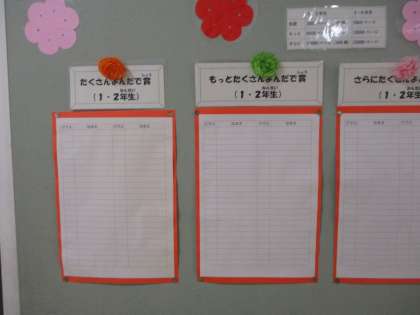 図書室の前には、本をたくさん読んだ子の名前が記される表がありました。まだ、誰の名前もありませんでしたが、これからきっとたくさんの名前が記されることでしょう。