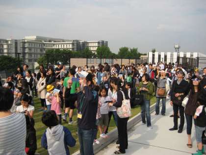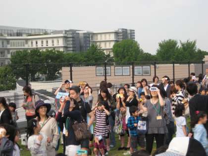 5月21日(月)太陽が月に隠されてリング状に見える金環日食を観測することができました。お天気は、曇り空。何とか晴れてほしいというみんなの願いがかなって、雲の切れ間から、三日月のような細い部分日食に続いて、きれいな輪の金環日食を見ることができました。早起きして学校に集まった子どもたちは、1〜3年生が屋上で、4〜6年生が体育館上のプールサイドで、日食グラスを手に空を見上げました。「アッ見えた!」「すごい!」「きれい!」と口々に感嘆の声を上げながら観測しました。