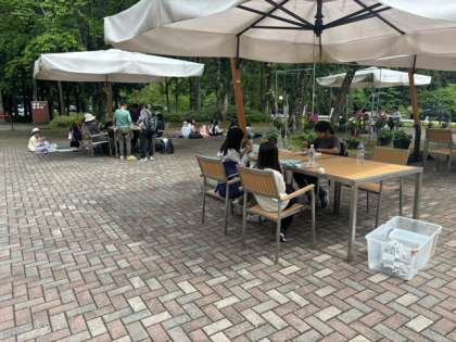 帰ってきてから、おにぎりのお弁当を食べ、コースター作りを行いました。