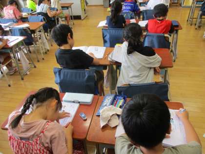 子どもたちは今まで学習してきた字と比べながら学習しています。