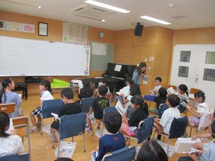 第2音楽室で、2年生が楽しそうに歌を歌っていました。