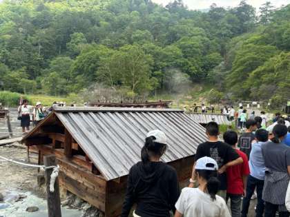 記念写真を撮影したあとは湯本の源泉を見学しました。