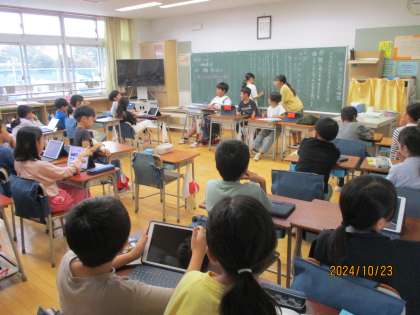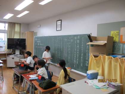 「外国から来た転校生にもわかりやすい遊びにしよう」、「外国の遊びがいいんじゃなかな。」「日本の昔の遊びも面白いんじゃない。」など、子どもたちがいろいろな意見を言っていました。司会の子は「たくさんの意見が出てまとめるのが大変だった。でも、たくさん意見が出たことはうれしい。」と話していました。