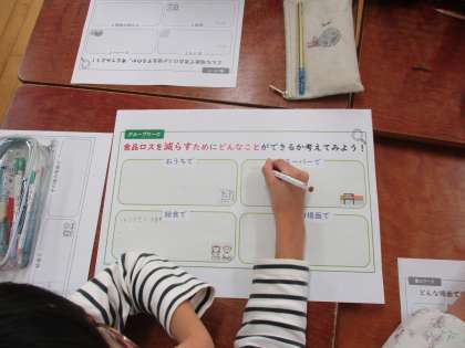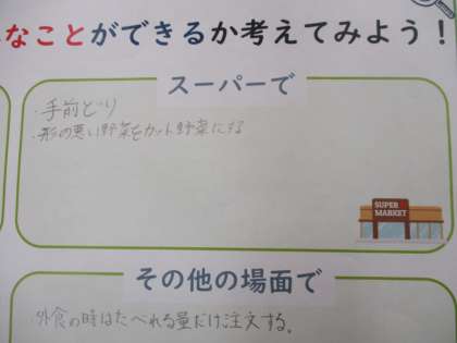 お店でできること、家でできることなど、グループで考えて共有しました。