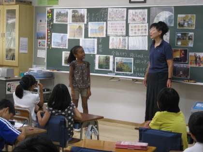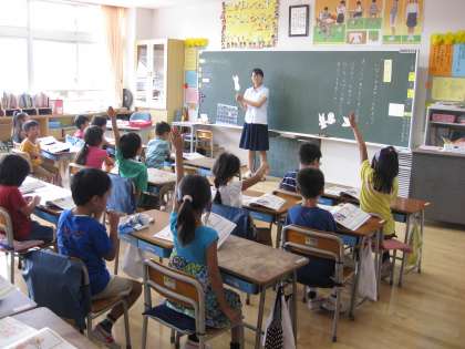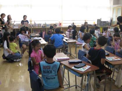 9月8日(土)の3校時に道徳授業地区公開講座がありました。写真左は1年生の教室です。「みんなと仲良く」の内容で、ペープサートに子供たちは惹きつけられていました。あいさつの大切さについて考えました。