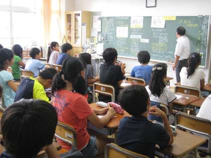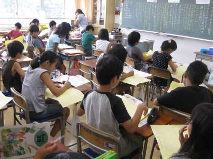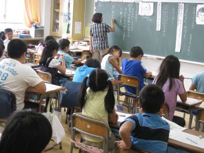 写真左は4年生の教室です。「友達のよさ」の内容で、友達どうし理解して信頼しあうことを学んでいました。