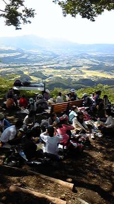清々しいよい天気になりました。みんな元気です。雨乞山の登山に出かけました。杉の林を抜けると、急な山道になりました。みんなで、がんばって!と声をかけながら登りました。やっと頂上に着くと、眼下にすばらしい眺めが広がっていました。黄色く色づいたたんぼがきれいでした。全員元気に登ることができ、よくがんばりました。