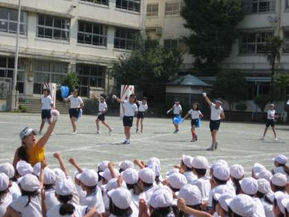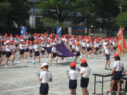 今日は、2回目の全校練習をしました。まず、赤白に分かれて入場行進の練習です。校旗を先頭に1年生から入場しました。だいぶそろってきました。そして、運動会の歌や校歌を練習しました。器楽委員会の子どもたちが、指揮と伴奏をがんばっています。その後、応援合戦の練習をしました。応援団長を中心に、応援団の子どもたちが大きな声で応援をリードしています。みんな一生懸命です。