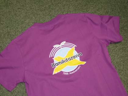 70周年の記念Tシャツができあがりました。学年ごとの色は、1年赤、2年ピンク、3年黄色、4年きみどり、5年みどり、6年青、教職員むらさきのレインボーカラーです。運動会の開会式に着て入場行進します。全校児童と教職員で校庭に虹をかけます。どうぞご覧ください。