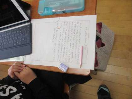国語科の学習のまとめで、大豆以外でも姿を変えているものを調べました。「いも」「こめ」「とうもろこし」など、一人一人が課題設定をして本で調べ、それを文章にまとめていました。文章は、「次に」「さらに」など順序を表す言葉を使うことと、「はじめ」「中」「おわり」の文章構成を意識して書いていました。みんなが書いた作文を読み合うのが楽しみです。ご家庭でも、「おでんは魚のすり身からできているものもあるんだよ。」など「すがたを変える〇〇」を話題にしても面白いかもしれません。