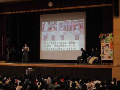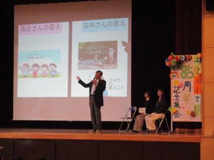 今年は、創立85周年記念の年です。上北沢小学校卒業生の地域の方と保護者の方をお招きし、当時と今の違いなどを写真を見ながら振り返ったり、学校の歴史クイズや校歌クイズをしたりしました。