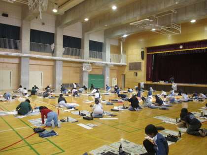 3,4年生は体育館で学年全員で、よい一年のスタートを切ることができるよう協力して雰囲気を作り、一生懸命取り組んでいました。