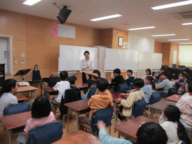 2025年が始まり、新しく学校にいらした先生と初めての音楽。「先生に質問がある人?」というとたくさんの手が挙がりました。「先生の好きなカタカナは何ですか?」など、面白い質問がたくさん飛んでいました。