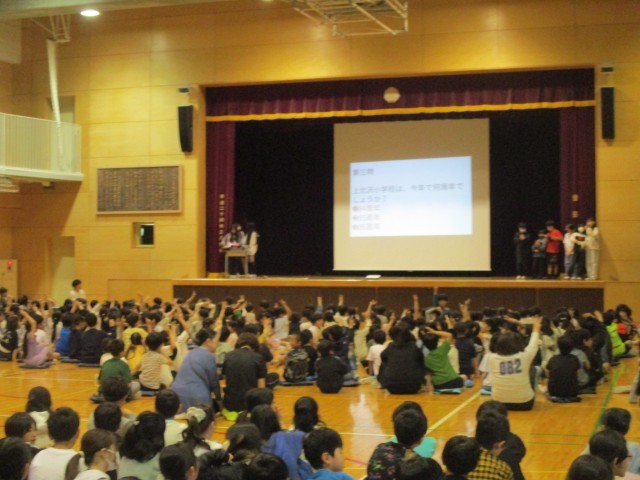 学校クイズを考え、集会委員会企画の児童集会を行いました。