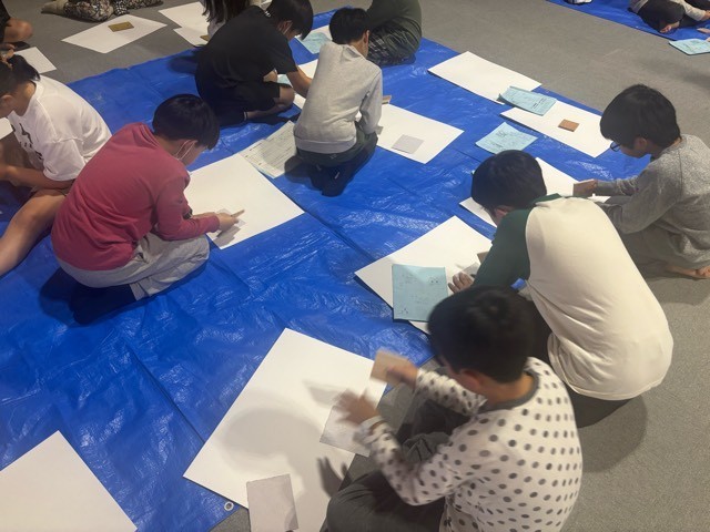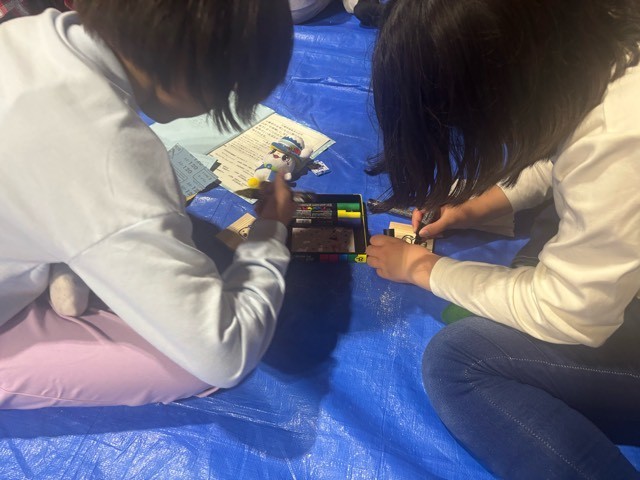 夕飯の後は、コースター作り。川場村の間伐材を使って、それぞれのデザインのコースターを作りました。