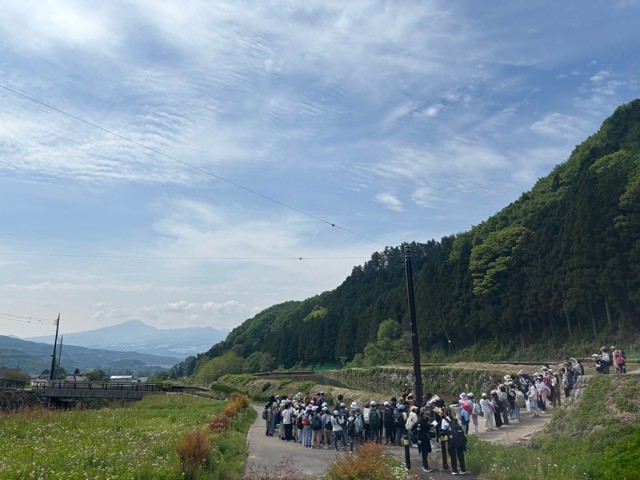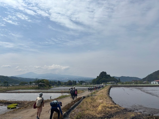 今日は川場村の村巡りです。宿から川場村体育館を目指します。田圃では、代かきを行っている様子が見られました。