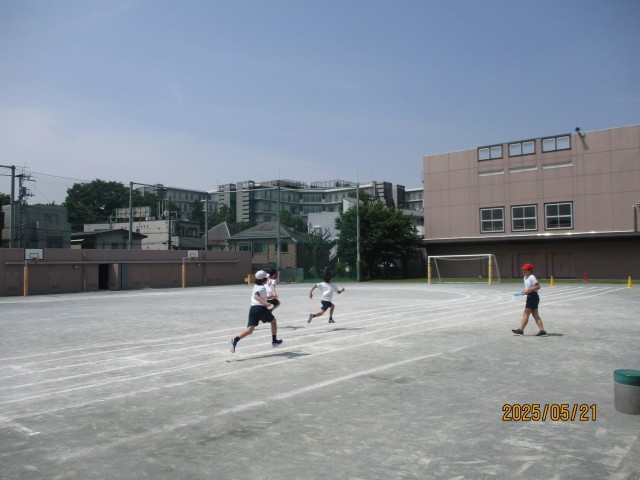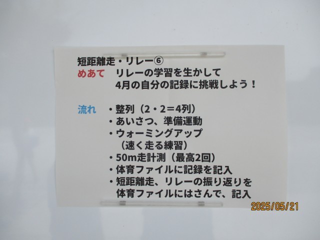 「しっかり前を向いて走ること」、「ゴールを駆け抜けること」などめあてをもって取り組んでいました。走り終わった子が、実況をするなど互いに良い雰囲気を作っていました。